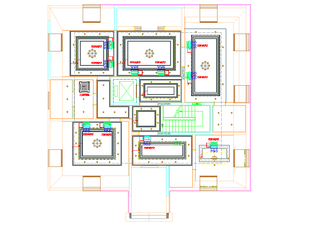 本方案中,室内需送新风的总面积为806㎡。新风的送风方式均采用顶送风,多点送风集中回风,让每个房间形成微正压,防止室外空气从门窗缝隙进入室内,造成二次污染。